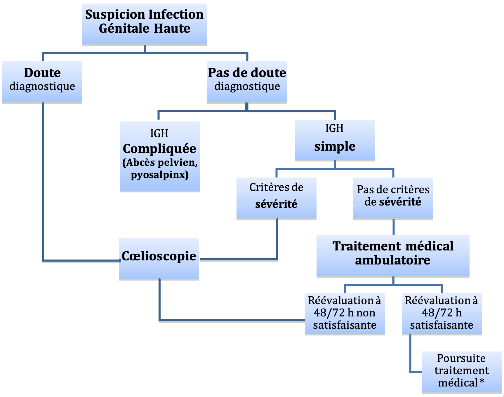 Judlin PG et al. Physiopathologie, diagnostic et prise en charge des infections geÃÅnitales hautes. Gynecol Obstet Fertil 2009 ; 37 : 172-182.