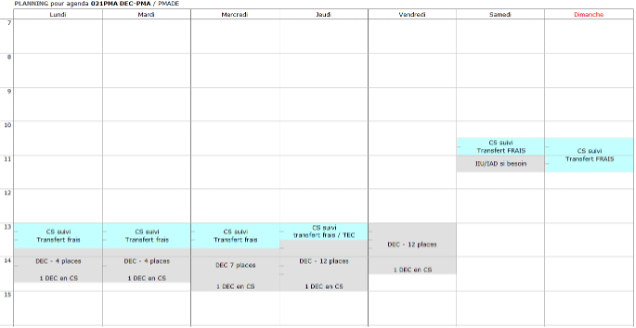 En semaine : nécessité de 2 internes : 1 aux écho monitorage et l’autre aux ponctions AL, le chef sera aux AG.
